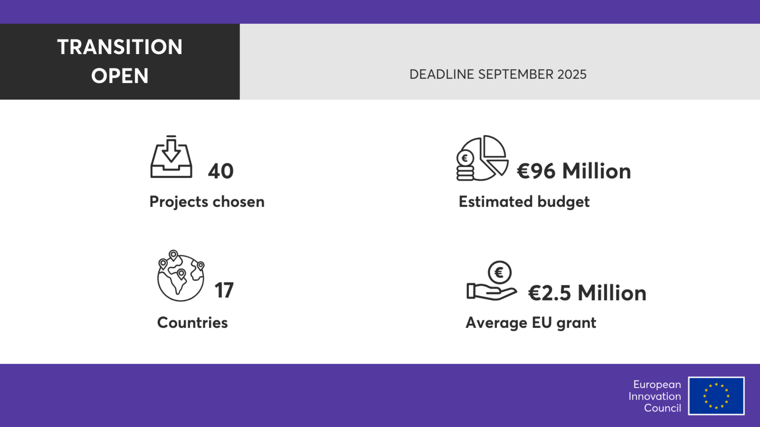For projects that are not yet ready for the Accelerator but have clear potential beyond the lab, this makes EIC Transition a particularly valuable instrument.