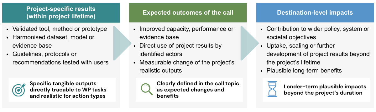 Example: If a topic’s expected outcome refers to “improved decision-making by public authorities”, the Impact section should explain: