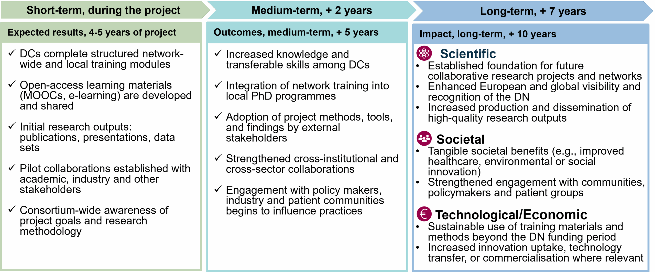 Sustainability planning can often seem vague. Evaluators seek concrete mechanisms to ensure that the value of the DN extends beyond its funding period. In this section, you should outline specific measures to ensure the sustainability of the DN training activities. These measures could include integrating components of the network-wide training activities into local PhD programmes (including specific pathways), creating Massive Open Online Courses (MOOCs) to provide lasting and open access to developed training materials, and establishing follow-up collaborations through future projects and other initiatives.