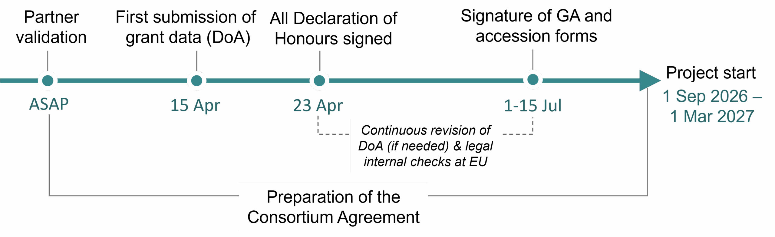 This transition is often underestimated based on our experience from dozens of DN GAPs. During proposal writing, many elements are presented in a coherent narrative and carefully structured tables. During grant preparation, those same elements need to be checked, confirmed, operationalised and, in some cases, revised. For example, there are some mandatory Deliverables in DNs that your REA Project Officer will request you to add, if not already included.