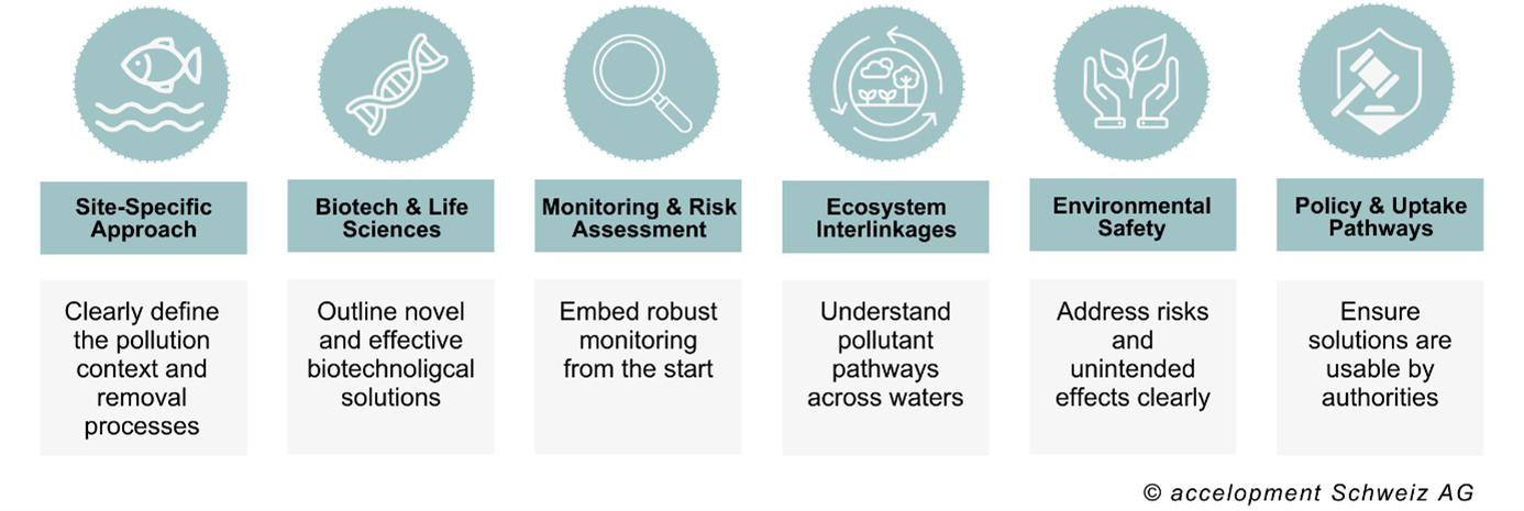 The call strongly prioritises solutions based on pollutant-degrading microbes, microbial communities and biotechnological approaches, including combinations with nanotechnology advancements where appropriate. Stage-1 proposals must already outline the underlying molecular mechanisms, including degradation pathways, community dynamics and interactions with pollutants and transformation products.